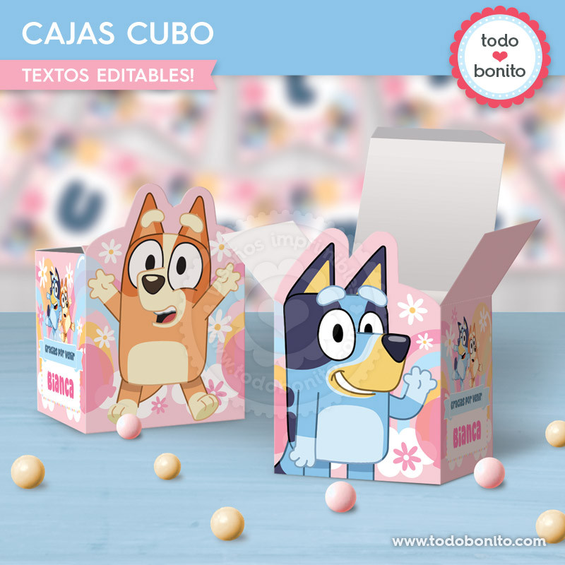 Decora tu fiesta con este kit imprimible de Bluey y Bingo en rosa y azul. Incluye banderines, toppers, etiquetas y más. ¡Descarga y decora al instante! Son Kits Imprimibles que se envían por e-mail apenas se acredita tu pago. Originales, hermosos y completos.
