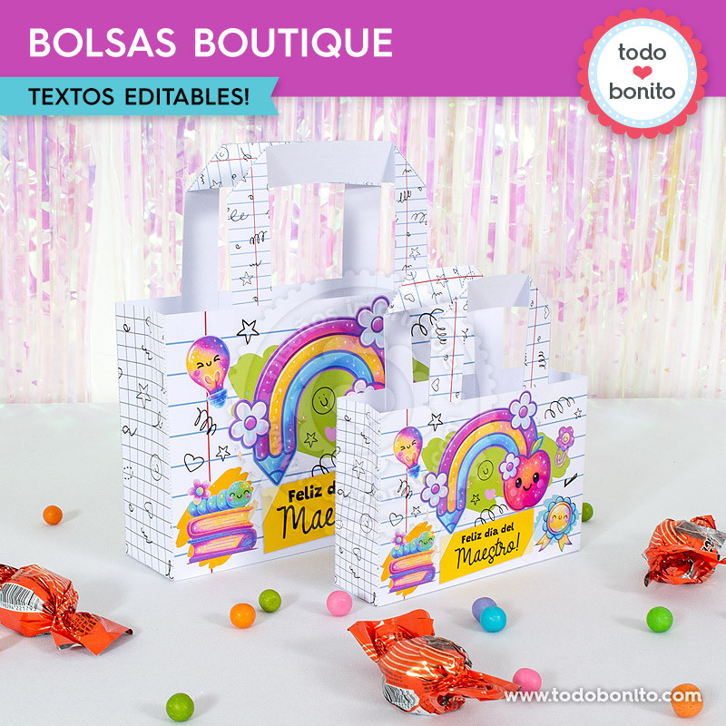 Este kit imprimible bolsas tipo boutique del Día del Maestro está pensado para sorprender a docentes y profesores con regalos únicos y personalizados. ✨