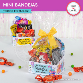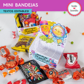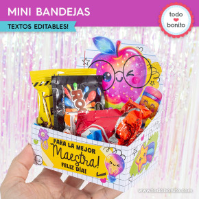 Este kit imprimible mini bandejas del Día del Maestro está pensado para sorprender a docentes y profesores con regalos únicos y personalizados. ✨