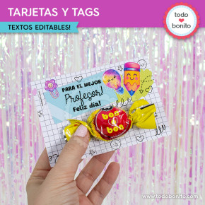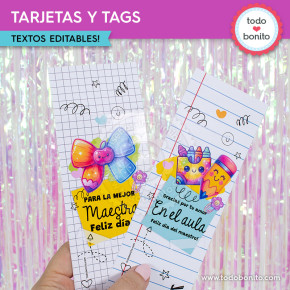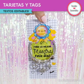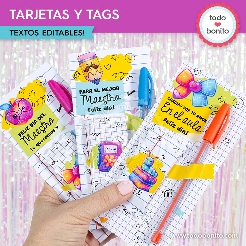 Este kit imprimible tarjetas y tags del Día del Maestro está pensado para sorprender a docentes y profesores con regalos únicos y personalizados. ✨