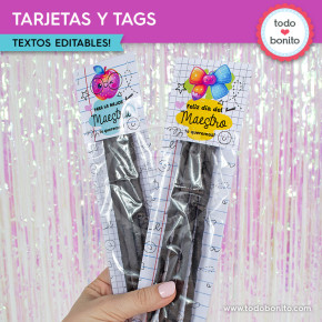 Los textos de los toppers circulares son *editables, para que lo personalices con texto de tu fiesta.