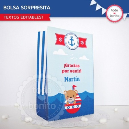 Decoraciones con tiernas imágenes de osito marinero. Puedes usarlo en un Baby Shower, Bautismo, Primer añito o el evento que quieras ya que es multifuncional.
