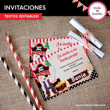 Piratas: invitación imprimible y digital