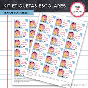 Son diseños para imprimir que se envían por e-mail apenas se acredita tu pago, para que puedas etiquetar todo tipo de útiles escolares con el personaje favorito de tu hijo o hija.