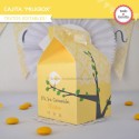 Decoración de pajarito en tonos amarillos y estampado damask. Puedes usarlo en un Baby Shower, Bautismo, Primer añito... Hasta queda precioso para decorar una Primera Comunión.
