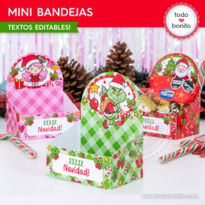 Estas minis bandejas están pensadas para sorprender con regalo único y personalizado en Navidad o Año Nuevo ✨ Incluye modelos de Papá Noel, El Grinch y Elfa. Cada bandeja se arma con 1 hoja A4.