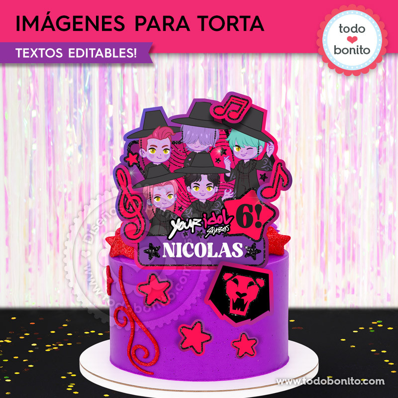 Perfectas para completar tu mesa dulce temática K-pop, estas figuras imprimibles capturan toda la energía del escenario, con colores intensos y detalles llenos de brillo.